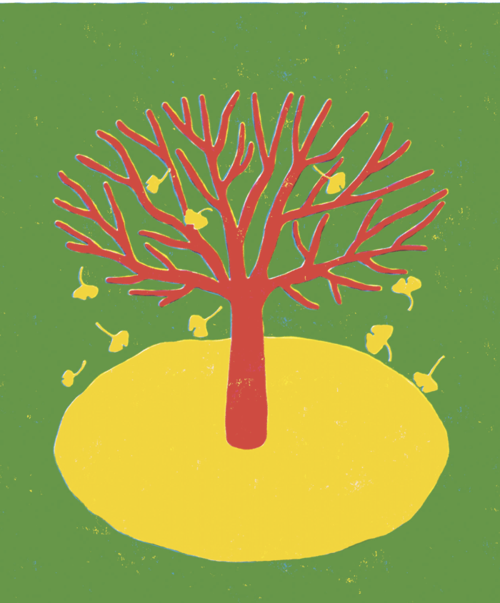 暑い日には涼しい木陰をつくってくれていたけれど、今では寒い日々に心をあたためてくれる、金色の影を落としている。ゲーテは、この「樹木の王」とも呼ばれるイチョウに詩を捧げた。二つに分かれたその葉を愛の象徴と見なし、「互いを選び、ひとつになろうとする二人」の姿をそこに重ねている。